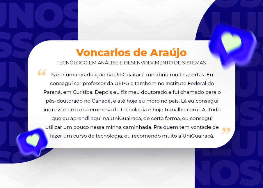 A UniGuairacá se destaca por oferecer ensino de alta qualidade, infraestrutura moderna, professores renomados e metodologias inovadoras. Estamos prontos para ajudar você a alcançar seus objetivos acadêmicos e profissionais.